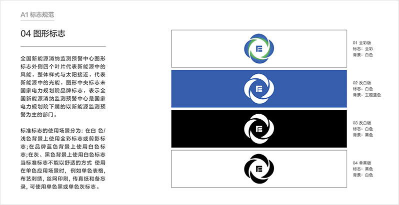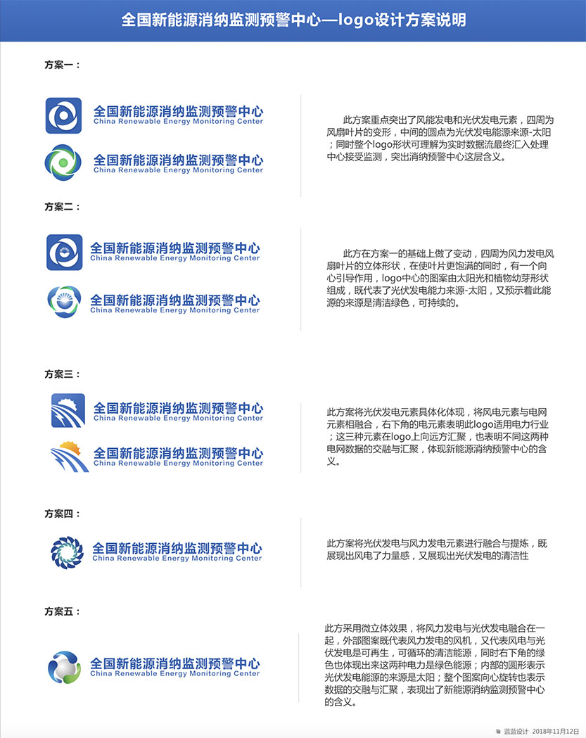 制約新能源消納的關(guān)鍵因素,為新能源的優(yōu)化布局和行業(yè)政策制定提供參考,促進(jìn)我國(guó)新能源高質(zhì)量發(fā)展。 藍(lán)藍(lán)設(shè)計(jì)對(duì)全國(guó)新能源消納監(jiān)測(cè)預(yù)警中心的工作范圍做了調(diào)查研究,首先理解業(yè)務(wù)和核心競(jìng)爭(zhēng)力,之后調(diào)查了行業(yè)相關(guān)品牌標(biāo)志設(shè)計(jì),聽(tīng)取了大家的期望,之后設(shè)計(jì)出多版logo供選擇。標(biāo)志設(shè)計(jì)確定后進(jìn)行了VI和宣傳冊(cè)的設(shè)計(jì)。