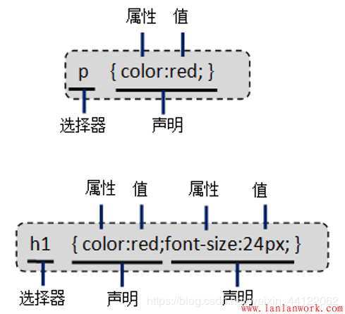 CSS的使用規(guī)則由兩部分組成:選擇器和一條或多條聲明。其基本基本語法如下: