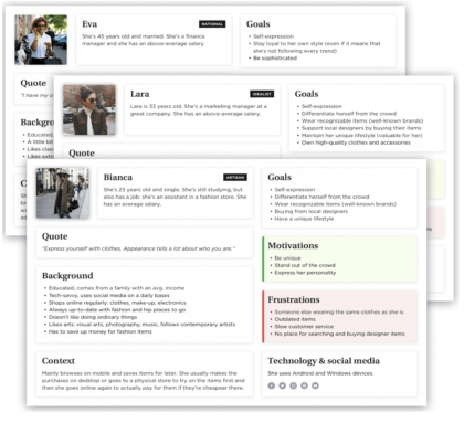 按照我們的邏輯順序,首先是創(chuàng)建角色。我們幾乎在所有項(xiàng)目中都會(huì)使用。基于我們的產(chǎn)品或服務(wù)的目標(biāo)群體,即不同的潛在客戶,構(gòu)建虛構(gòu)人物個(gè)性。這個(gè)工具可以讓我們更多地了解客戶的需求、問(wèn)題、動(dòng)機(jī)和行為。我們通過(guò)研討會(huì)、頭腦風(fēng)暴或通過(guò)定性和定量研究“簡(jiǎn)單地”收集盡可能多的數(shù)據(jù)來(lái)實(shí)現(xiàn)這一目標(biāo)。
