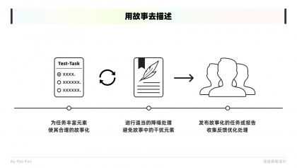 故事的元素通常會(huì)更豐富更有趣味,用故事敘事更能提升用戶的興趣和關(guān)注,這能便于構(gòu)建共情。因此當(dāng)你發(fā)布測(cè)試任務(wù)或者撰寫研究報(bào)告時(shí),都可以加入背景故事或用故事敘事,便于對(duì)象更容易理解和共情,你甚至可以用筆繪制故事版,像四格漫畫一般,因?yàn)橛脠D傳達(dá)概念或信息更容易讓人記住或回想起來,并且當(dāng)你用這些方法時(shí),自身也能加強(qiáng)理解。共情不是單向傳遞的,不要高估對(duì)方的理解能力,讓你的信息更簡(jiǎn)單明了的傳遞也是重要的共情應(yīng)用!