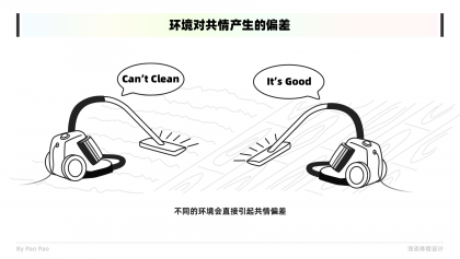 在體驗(yàn)設(shè)計(jì)的過程中,我們需要與目標(biāo)對(duì)象構(gòu)建共情時(shí),一定是有目的有意圖的。以使用性測(cè)試為例,往往我們都會(huì)設(shè)定一些產(chǎn)品測(cè)試任務(wù)和目標(biāo)給用戶,再進(jìn)行觀察和共情。這也將允許我們能夠在同一個(gè)或相似的場(chǎng)景事件中發(fā)生共情,這樣才能夠獲取到更真實(shí)有效的共情。以一個(gè)吸塵器產(chǎn)品為例,如果對(duì)方是在地毯上測(cè)試的,而你是在木質(zhì)地板的環(huán)境下去共情的,那么共情結(jié)果肯定是有所出入的。所以構(gòu)建一個(gè)共情目的甚至是環(huán)境是有效共情的一個(gè)重點(diǎn)之一。