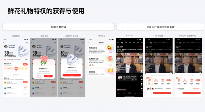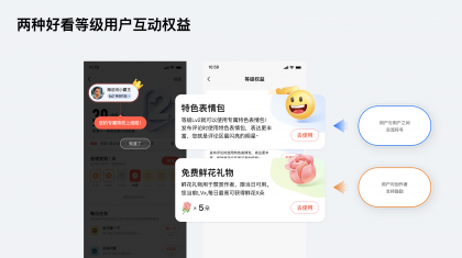 因此在精神激勵的虛擬權(quán)益上,好看平臺希望能夠打造一款有記憶點的互動方式,一方面;用戶之間的主要互動場景是評論區(qū),因此權(quán)益之一是打造符合好看人群特征的互動表情,創(chuàng)造平臺特有的互動語言來加強用戶交流;另一方面好看的內(nèi)容創(chuàng)作者一般為多平臺創(chuàng)作者,需要讓創(chuàng)作者在好看平臺上感受到用戶差異,激發(fā)創(chuàng)作動力,因此也塑造了用戶等級下的另一個權(quán)益“鮮花禮物”。作者使用被打賞的鮮花可以進行流量曝光的兌換,形成了一個用戶側(cè)互動激勵與創(chuàng)作者側(cè)的良性互動。