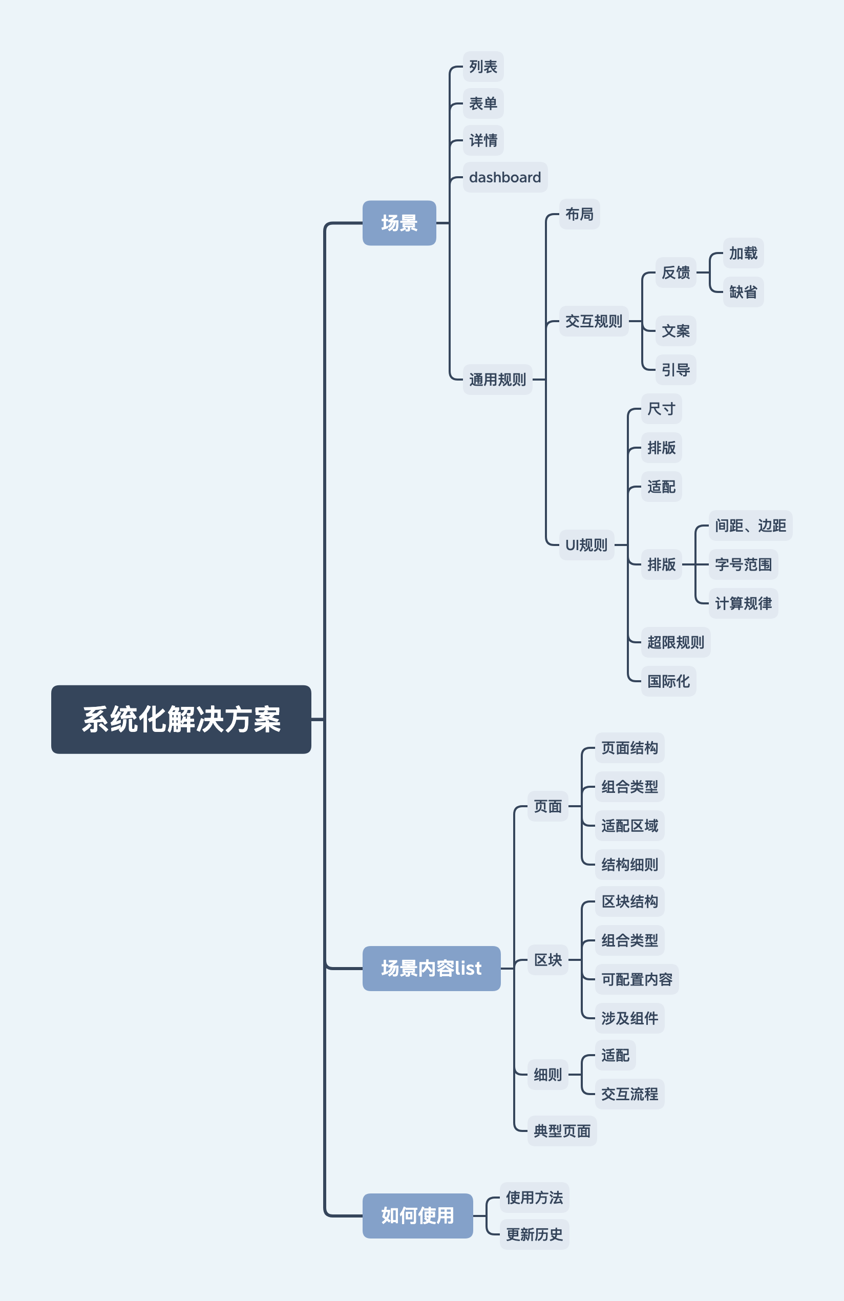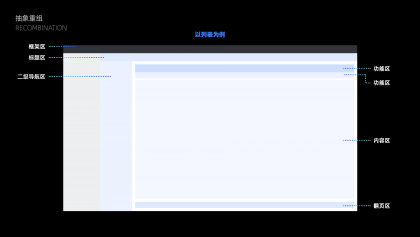 從第一步全盤的信息拆解和歸納, 已經(jīng)發(fā)現(xiàn)問題, 這一階段主要2點(diǎn):第一是如何通過設(shè)計(jì)規(guī)則來避免同樣的問題產(chǎn)生,第二是如何通過簡單的規(guī)則重組減少多人合作記憶復(fù)雜度。思路類似于設(shè)計(jì)一個界面,首先得有一個布局劃分,不同的區(qū)塊要放哪些內(nèi)容,再到區(qū)塊里的細(xì)節(jié)內(nèi)容規(guī)則,從而抽象出由布局到區(qū)塊的設(shè)計(jì)規(guī)則和可復(fù)用的組件。