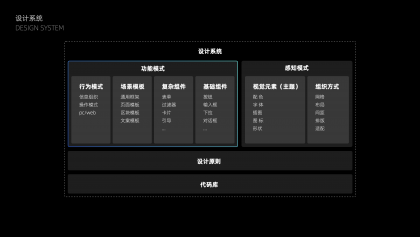 所以如何解決團(tuán)隊(duì)效率和產(chǎn)品質(zhì)量問題?我們的解法是抽象體系化的解決方案:設(shè)計(jì)模式化和代碼化,設(shè)計(jì)從原子到全局進(jìn)行統(tǒng)一和優(yōu)化,并形成系統(tǒng)化的設(shè)計(jì)指導(dǎo),由開發(fā)進(jìn)行模式代碼化,提供靈活可配置的規(guī)則。以此,設(shè)計(jì)有更系統(tǒng)化的設(shè)計(jì)原則,整體的統(tǒng)一性和體驗(yàn)有保障,設(shè)計(jì)和開發(fā)周期也可以縮減,甚至大部分日常需求可直接由產(chǎn)品對接開發(fā)直接上線。