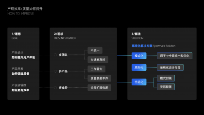 互聯(lián)網(wǎng)瞬息萬變,在產(chǎn)品不斷更迭的過程中,我們經(jīng)常說要保證產(chǎn)品設(shè)計(jì)的一致性和質(zhì)量,提升產(chǎn)研鏈路的效率。但現(xiàn)實(shí)情況是:產(chǎn)研團(tuán)隊(duì)長期面對的是產(chǎn)品越來越復(fù)雜,體量越來越大,一個個復(fù)雜的產(chǎn)品下包含N個業(yè)務(wù)線,N個業(yè)務(wù)團(tuán)隊(duì),甚至還有外部合作的業(yè)務(wù),每個迭代都要面對數(shù)以百計(jì)的功能上線,經(jīng)常容易出現(xiàn)各種相同但不一致的功能,上線質(zhì)量參差不齊,執(zhí)行者也容易陷入日復(fù)一日的需求海洋而沒有更多精力去挖掘更有價(jià)值的事情。
