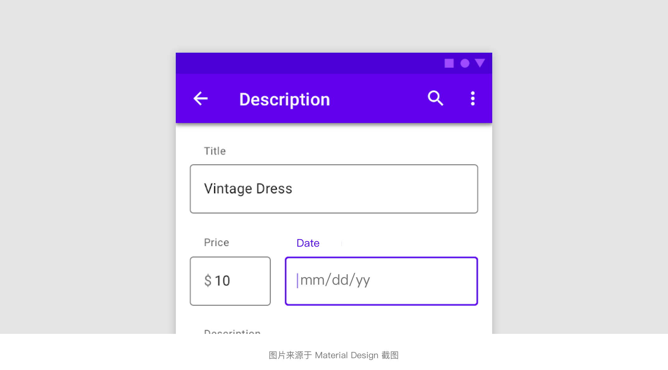 針對上面問題也不是沒有解決方案,在Material Design中有提供針對上面的問題的解決方案,我們這邊暫時稱其為“浮動標(biāo)簽”,默認(rèn)情況下輸入框內(nèi)顯示占位文本,當(dāng)用戶輸入內(nèi)容以后占位文本浮動到內(nèi)容上方與內(nèi)容左對齊。