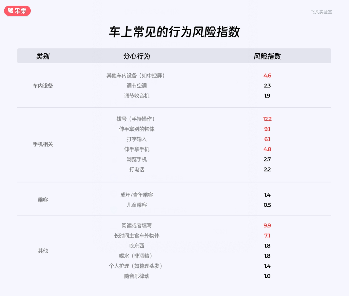 2、車上常見的行為風險指數(shù)