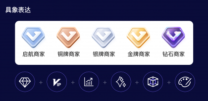 設(shè)計的基本出發(fā)點是幫助業(yè)務(wù)建設(shè)平臺等級模型的表達體系,將業(yè)務(wù)目標轉(zhuǎn)化為用戶行為,設(shè)計清晰而直觀的商家分層表達體系,將不同商家等級與其對應(yīng)的特權(quán)、服務(wù)等信息進行明確的關(guān)聯(lián)和傳達,以便商家能夠快速理解和辨識商家等級的差異和優(yōu)勢。