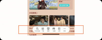 3.1.2產(chǎn)品亮點:底部操作區(qū)功能相比其他產(chǎn)品,騰訊視頻在進入豎屏播放頁后不會再頂部的視頻中默認展示操作內(nèi)容,給用戶帶來更好的觀看體驗,并且把視頻相關(guān)的操作內(nèi)容放置底部做成一個底部操作區(qū),用戶可以在底部快速的對視頻進行操作如:下載、投屏、一起看、分享等。而不是把功能分散在界面中,這樣不僅可以降低用戶的尋找這些高頻操作的成本,同時提升視頻的觀看體驗。