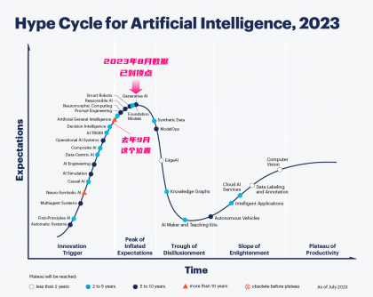 生成式AI到了技術(shù)發(fā)展從開始走向期望的膨脹期,現(xiàn)象級產(chǎn)品已經(jīng)出現(xiàn);