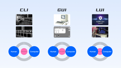 界面交互的需求繁榮得益于圖形交互的興起和市場的發(fā)展,從CLI(命令行)→GUI(圖形交互)→LUI(自然語言交互),對設(shè)計服務(wù)的要求自然不同: