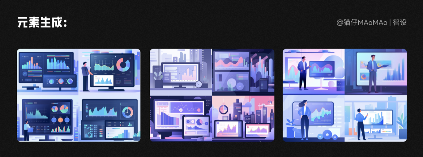 數(shù)據(jù)分析與可視化的背景,直接生成數(shù)據(jù)圖表的效果并不是很理想,把辦公室場景全部描繪出來生成的素材更加符合需求,但是還需要再手動對素材進(jìn)行細(xì)化。