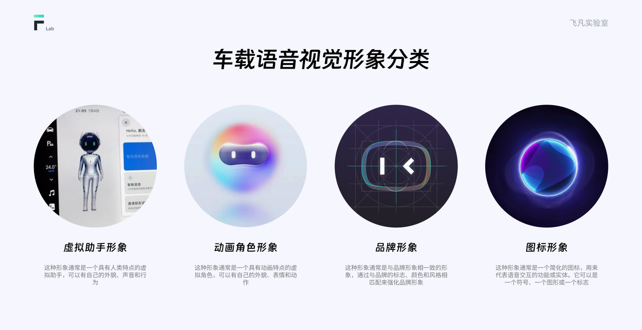 這些類型并不是互斥的,實際上,車載語音視覺形象可以結(jié)合多種類型,以滿足不同的設(shè)計目標和用戶需求。無論是哪種形象類型,車載語音視覺形象的設(shè)計都應(yīng)考慮與用戶的情感連接、品牌形象一致性和用戶體驗的關(guān)系。