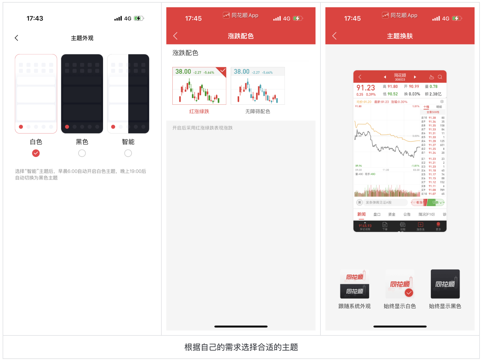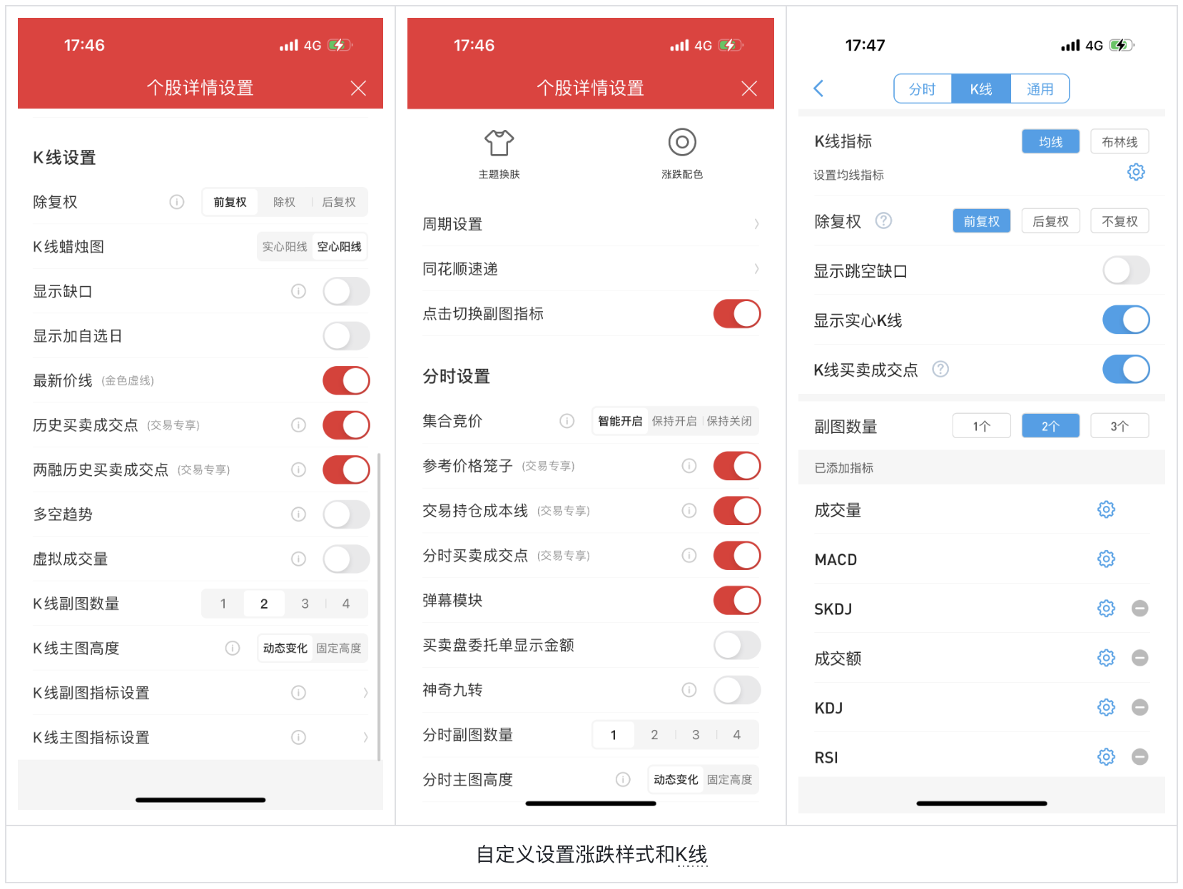 舉個(gè)例子,在個(gè)股詳情K線圖頁(yè)面,上漲用空心圖形表示,下跌用實(shí)心圖形表示,這種方法不僅幫助色盲用戶識(shí)別信息,還增加了視覺上的吸引力。