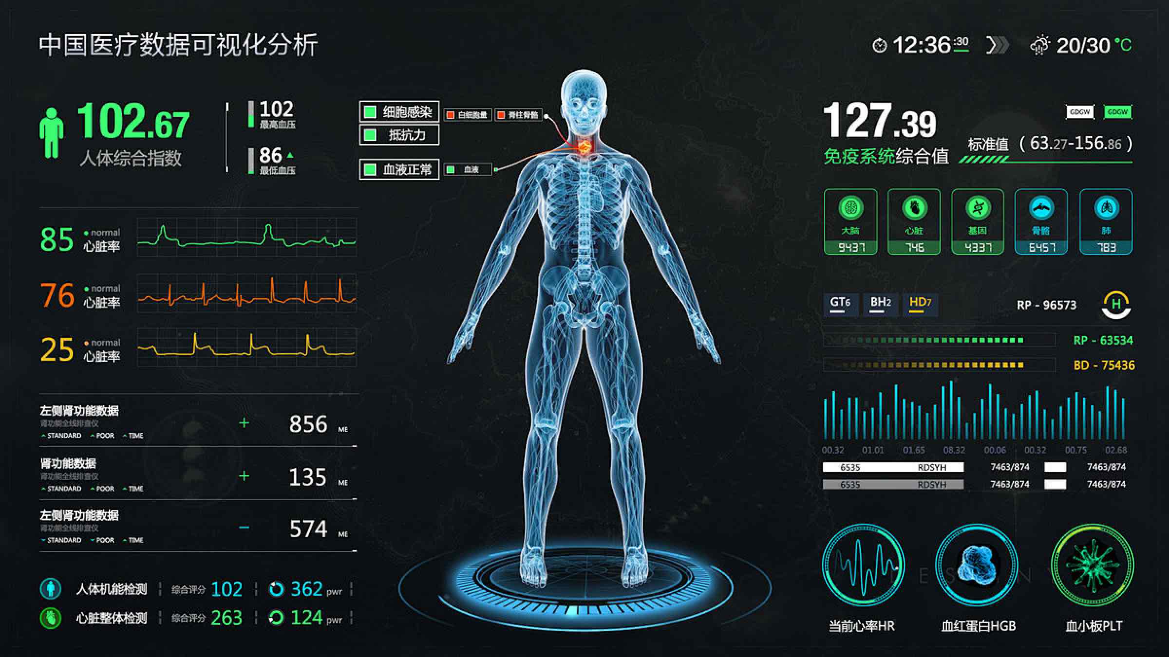 醫(yī)療數(shù)據(jù)來源廣泛且復(fù)雜多樣,涵蓋醫(yī)院信息系統(tǒng)(HIS)中的患者基本信息、電子病歷系統(tǒng)(EMR)里的詳細診療記錄、醫(yī)學(xué)影像存儲與傳輸系統(tǒng)(PACS)的影像資料,以及各類醫(yī)療物聯(lián)網(wǎng)設(shè)備實時采集的生命體征數(shù)據(jù)等。構(gòu)建可視化醫(yī)療大屏 UI 架構(gòu)的第一步,便是打造強大的底層數(shù)據(jù)整合層。通過專業(yè)的數(shù)據(jù)網(wǎng)關(guān)與中間件,運用 ETL 技術(shù),將這些分散、異構(gòu)的數(shù)據(jù)進行匯聚、清洗與標(biāo)準(zhǔn)化轉(zhuǎn)換。例如,將不同設(shè)備采集的心率數(shù)據(jù)統(tǒng)一格式,去除重復(fù)或錯誤錄入的患者病歷信息,確保數(shù)據(jù)的準(zhǔn)確性與一致性,為上層可視化展示筑牢根基。