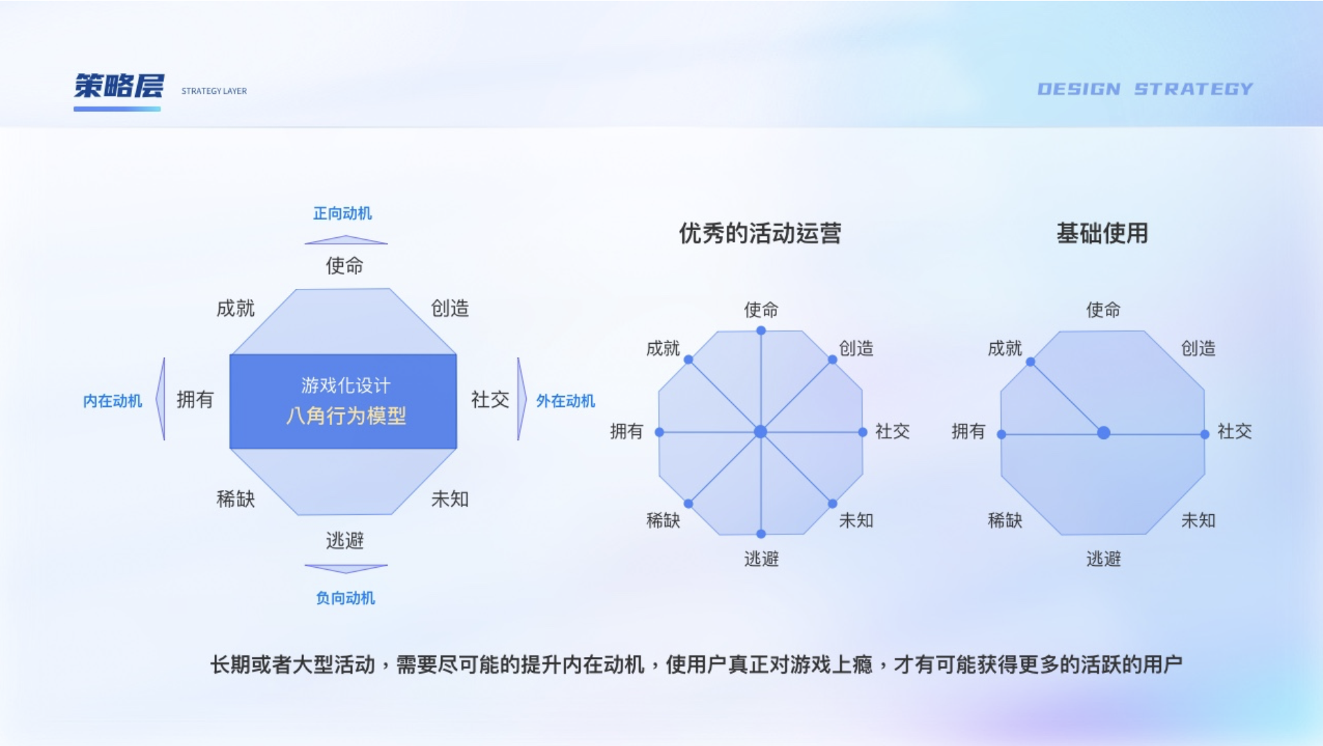 由于游戲本身對(duì)用戶就有一種天然的吸引力,加上可以很好的與運(yùn)營(yíng)活動(dòng)結(jié)合打造沉浸式體驗(yàn),越來(lái)越多活動(dòng)都是與游戲結(jié)合來(lái)達(dá)到活動(dòng)目標(biāo),也叫運(yùn)營(yíng)的游戲化。核心宗旨是“以人為本”的設(shè)計(jì)理念,并不是以功能為中心,在設(shè)計(jì)時(shí)可以使用游戲化設(shè)計(jì)八角模型。