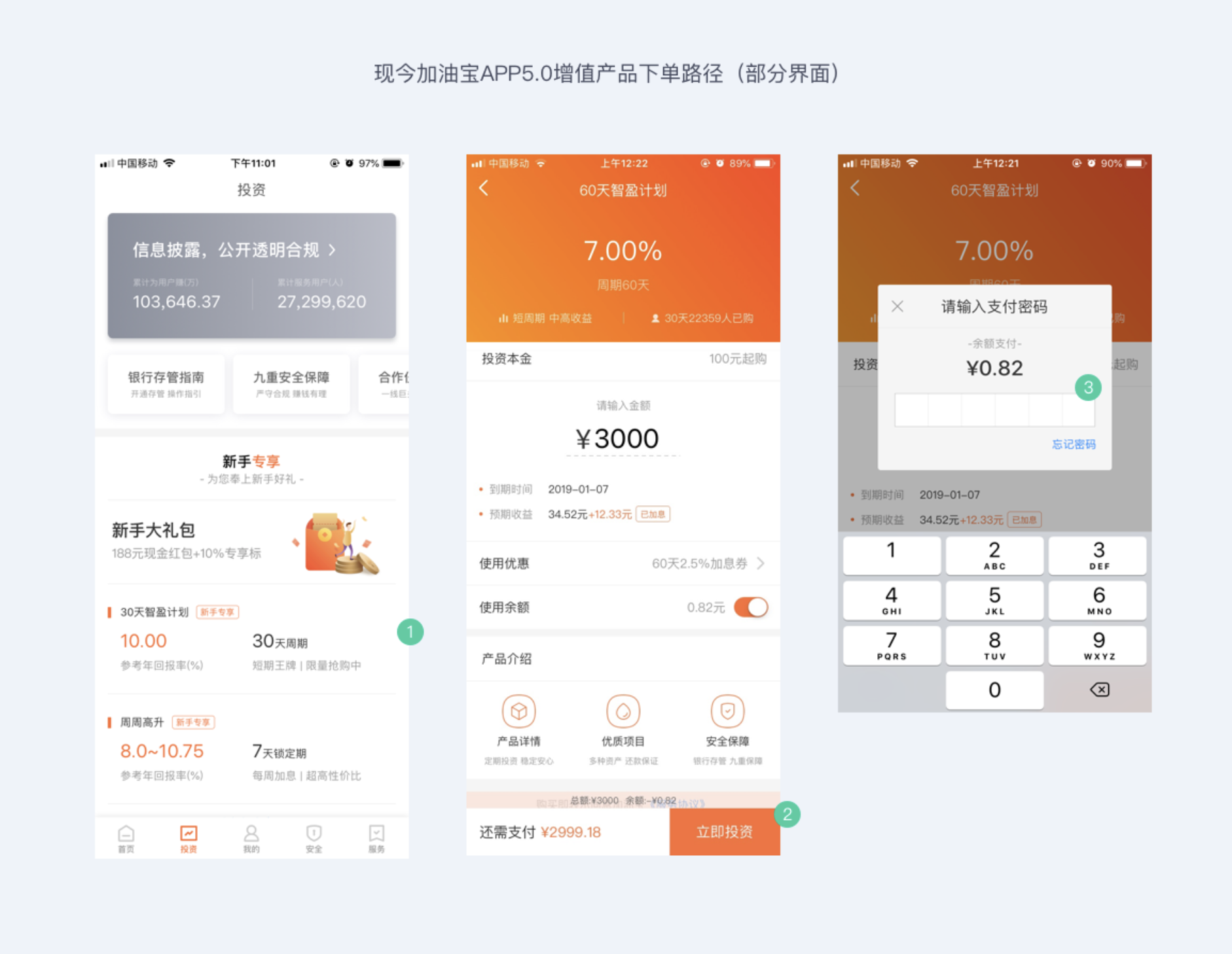 - 提升支付確認率:在數(shù)字鍵盤旁強調(diào)「安全加密」,重復平臺歷史兌付率 100%、銀行存管等安全保障。