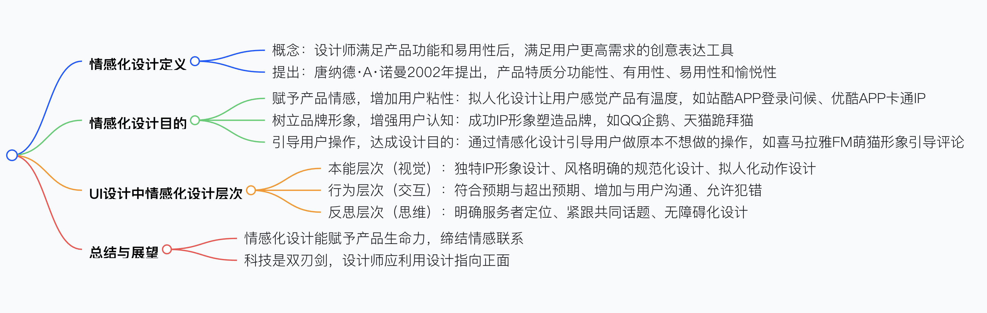 - 2002 年,美國認知心理學家唐納德?A?諾曼教授提出這一概念,他將產品特質劃分為功能性、有用性、易用性和愉悅性四個層面,由低到高,情感化設計代表愉悅性處于頂端位置。