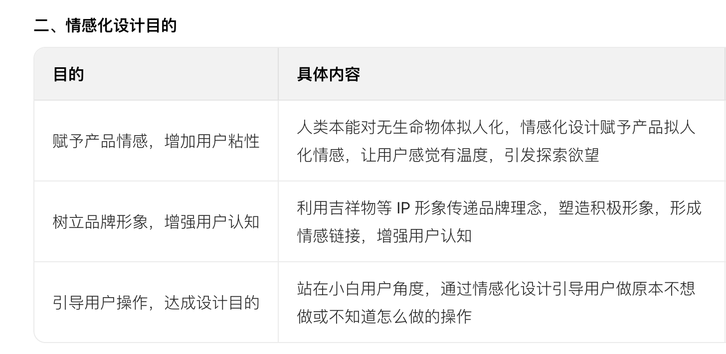 - 答案:本能層次即視覺層次的情感化設計,主要從三個方面實現(xiàn)。一是獨特的 IP 形象設計,利用高識別度 IP 形象拉近用戶與產品關系,打造品牌效應;二是風格明確的規(guī)范化設計,使界面整潔有品質感,讓用戶產生舒適情感;三是有趣的擬人化動作設計,通過產品擬人化互動反饋,讓用戶感到有趣。