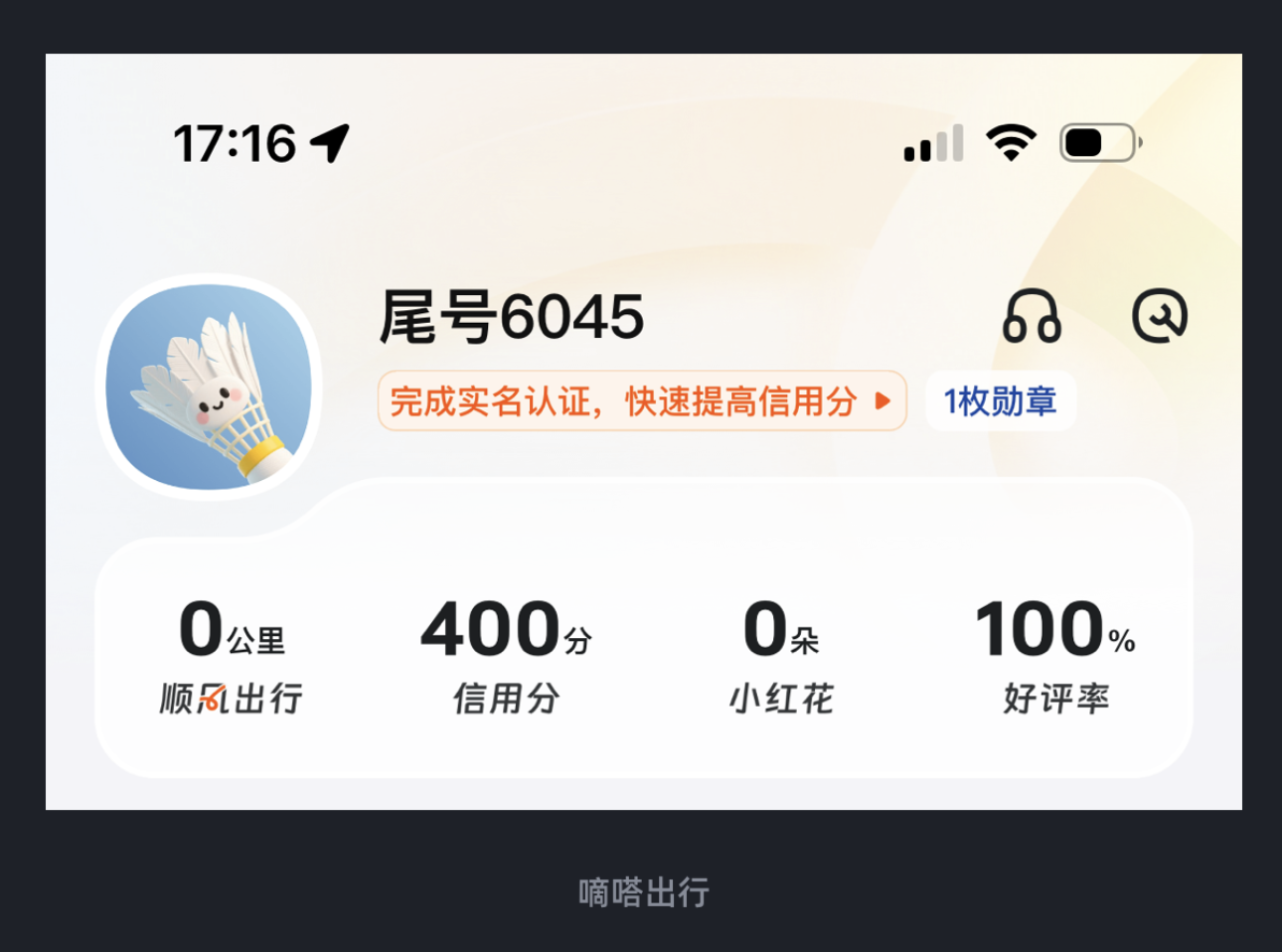 個(gè)人中心是所有 APP 的 “標(biāo)配模塊”,但多數(shù)設(shè)計(jì)仍難逃 “頭像 + 列表” 的呆板布局,要么頭像過(guò)大導(dǎo)致周?chē)?fù)空間浪費(fèi),要么頭像過(guò)小失去視覺(jué)焦點(diǎn)。嘀嗒出行的個(gè)人中心設(shè)計(jì),卻用一個(gè)巧妙的 “結(jié)構(gòu)嵌合” 思路打破了這種局限。