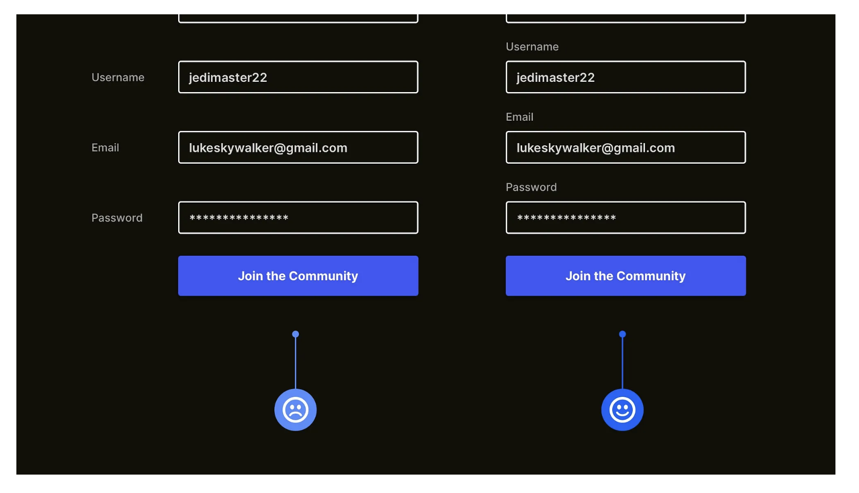 正確的錯誤提示應 “顏色 + 圖標 + 文字” 結(jié)合:比如輸入重復的用戶名時,除了用紅色邊框標注字段,還要添加 “×” 圖標,并附上文字 “該用戶名已被注冊,請更換”。這樣無論用戶是否有色盲,都能清晰知曉問題所在,順利修改信息。