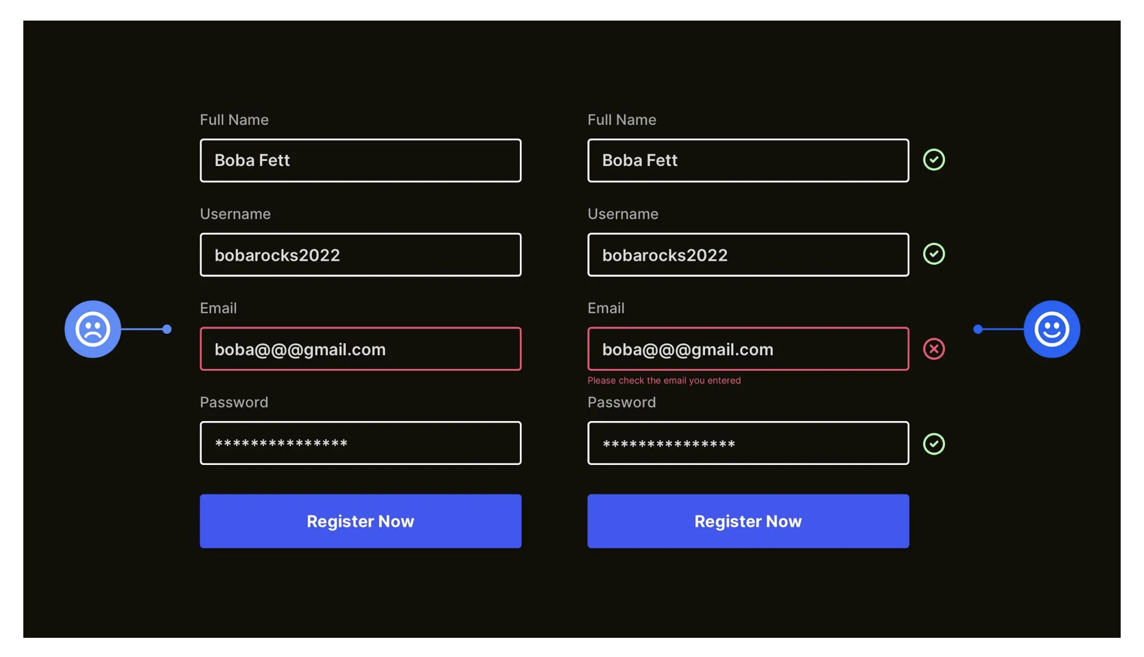 只需添加 “即時反饋” 功能:用戶輸入完一個字段后,立即用簡單圖標 + 短句提示結(jié)果 —— 比如輸入正確的郵箱時,顯示 “√ 郵箱格式正確”;輸入錯誤時,顯示 “× 請檢查郵箱格式(需包含 @和后綴)”。無需復雜動效,簡單的反饋就能提升表單填寫體驗,減少提交失敗的流失。