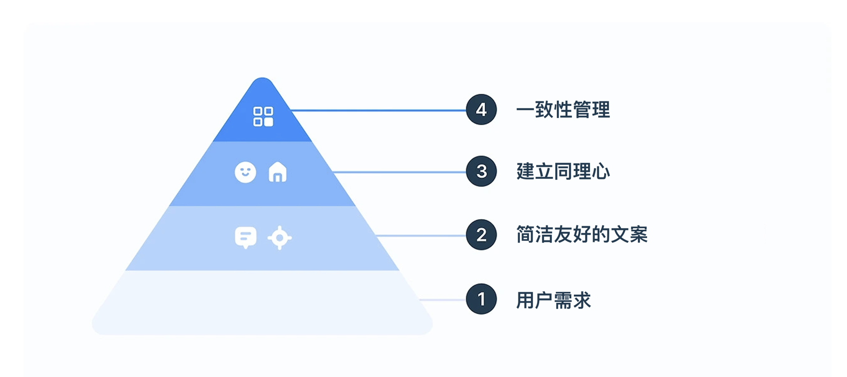 好的 UX 文案需要融合五個核心要素,且有明確的優(yōu)先級層次,就像搭建一座房子,基礎(chǔ)不牢,再華麗的裝飾也沒用: