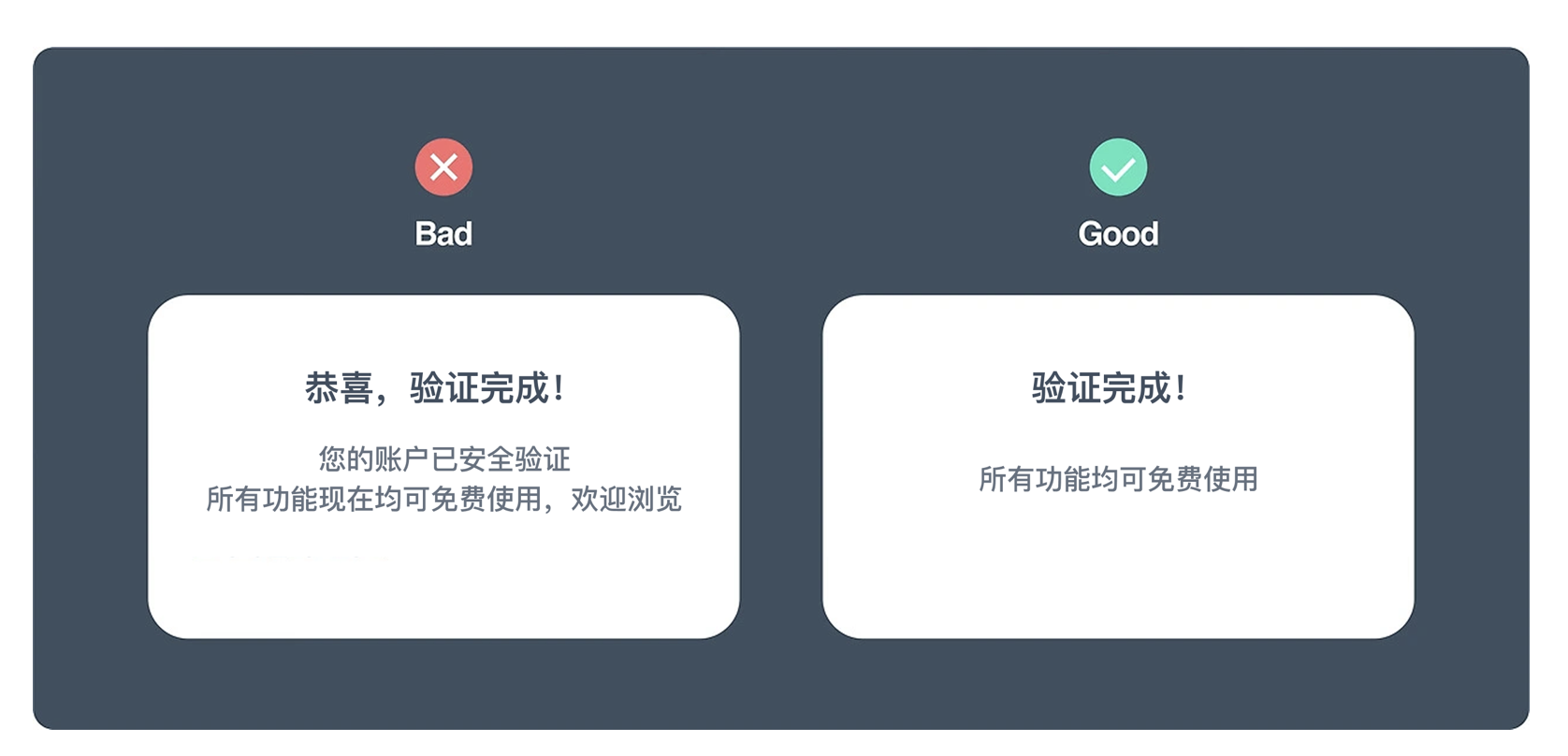 - 減字?jǐn)?shù):去掉不必要的形容詞和解釋。比如注冊成功提示,“恭喜您!注冊流程已全部完成,您的賬戶現(xiàn)在可以正常使用所有功能啦”,可簡化為 “注冊成功!所有功能已解鎖”,信息沒丟,讀起來更輕松。