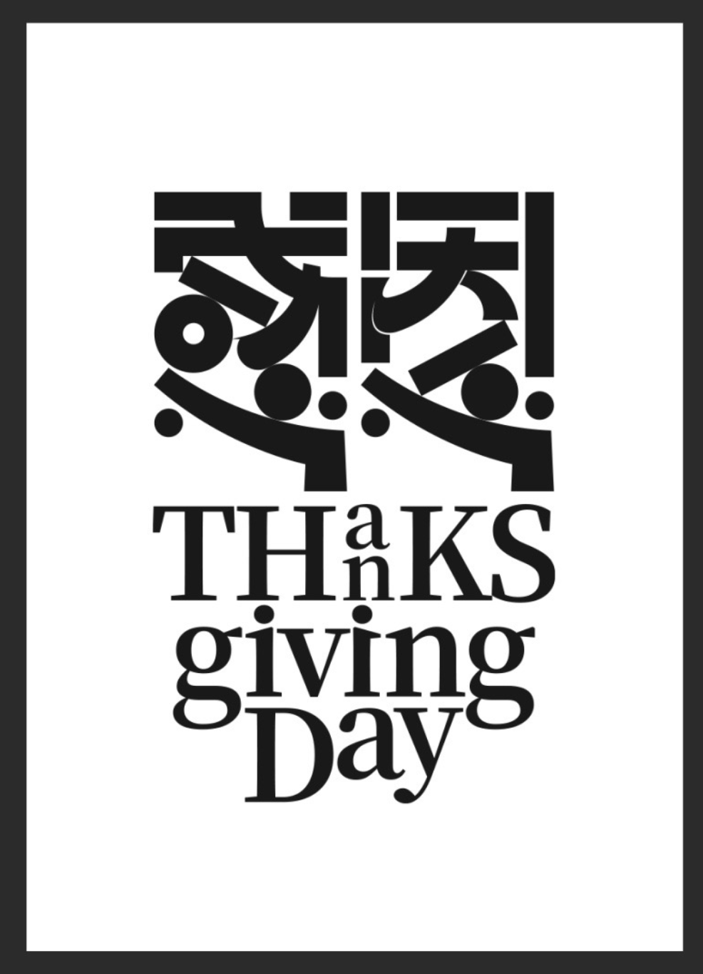 幾何化不代表 “放棄書寫邏輯”。在 “感恩節(jié)” 的 “感” 字設(shè)計(jì)中,將撇筆做 “由細(xì)到粗” 的過渡,模擬手寫時(shí) “下筆重、收筆輕” 的力道;在 “恩” 字設(shè)計(jì)中,將內(nèi)部的撇筆與豎筆做 “連筆重組”,貼合手寫時(shí) “筆畫銜接的慣性”。這種 “幾何結(jié)構(gòu) + 書寫屬性” 的疊加,讓文字既有幾何的規(guī)整,又有手寫的流暢。