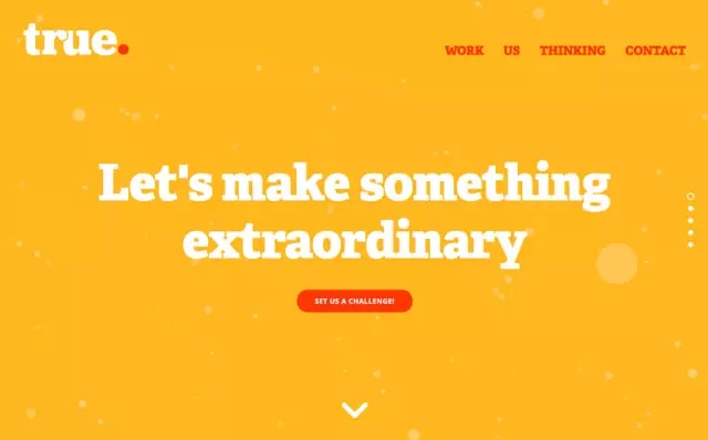 ·單頁設(shè)計(jì):為了最大限度地呈現(xiàn)出各種設(shè)計(jì)效果,這些網(wǎng)站通常會(huì)沿用之前的單頁設(shè)計(jì),有些網(wǎng)站會(huì)加入標(biāo)準(zhǔn)化的導(dǎo)航來引導(dǎo)用戶進(jìn)入其他的內(nèi)頁。
