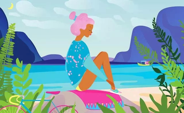 藍(lán)色與多種顏色相搭配,盡量選中一個(gè)作為主色,比如上圖中以藍(lán)色作為主色,無(wú)論是遠(yuǎn)山天空還是河流,包括人物的衣服都是藍(lán)色,與此同時(shí),粉紅作為點(diǎn)睛色。畫面雖然大量運(yùn)用藍(lán)色,會(huì)偏向冷調(diào),但此處運(yùn)用了紅色、黃色和偏暖的綠色就讓畫面的顏色達(dá)到了平衡。