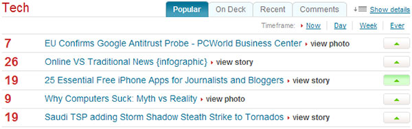 把操作放在每一行數(shù)據(jù)的開頭或結(jié)尾,是個簡單方法。如下所示,Mixx把操作放在了每一行的末尾,這樣很容易進行投票的操作。