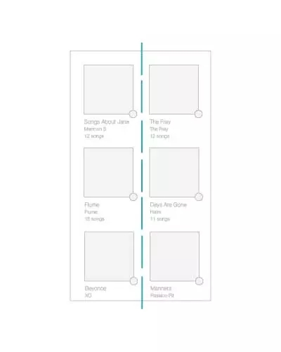 軸最常見(jiàn)于對(duì)稱(chēng)元素的使用,當(dāng)元素被布置成軸對(duì)稱(chēng)的布局的時(shí)候,會(huì)給人有序感。就像生活中絕大多數(shù)的事情一樣,我們更傾向于享受有序的的東西,它們令人感覺(jué)平穩(wěn)、舒適、平易近人。最簡(jiǎn)單的一個(gè)例子就是iTunes 程序中的專(zhuān)輯列表的設(shè)計(jì),所有的專(zhuān)輯列表在界面的左側(cè)保持對(duì)齊,圍繞虛線(xiàn)軸軸對(duì)稱(chēng)。