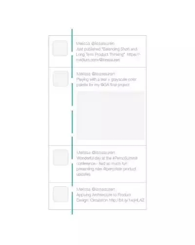 從產(chǎn)品設(shè)計(jì)的角度上來(lái)看,Twitter 的時(shí)間線(xiàn)設(shè)計(jì)就是一個(gè)很好的案例,左側(cè)的頭像和右側(cè)的推文共同塑造出縫隙中軸線(xiàn)的感覺(jué)。