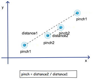 所以縮放的核心是獲取兩個(gè)接觸點(diǎn)之間的直線距離。