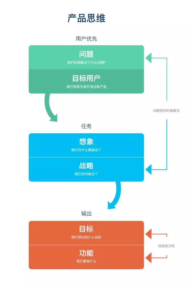 當(dāng)我們在產(chǎn)品中思考,ux設(shè)計(jì)師應(yīng)該要先回答這些問題:我們解決了什么(用戶)問題?我們是為了誰做這些?我們?yōu)槭裁匆鲞@個(gè)?我們?nèi)绾巫鲞@個(gè)并且要達(dá)到什么目標(biāo)?只有當(dāng)這些問題都有了很好的答案后再去思考要做哪些功能。