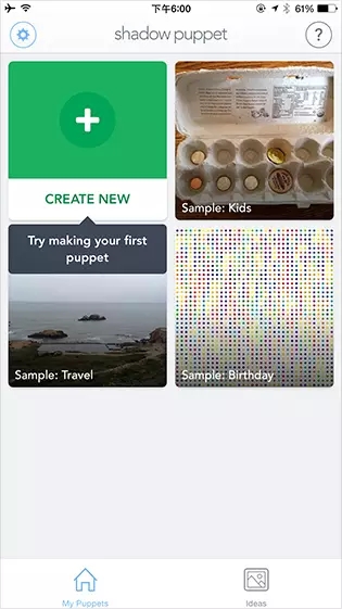 Shadow Puppet可以把照片和視頻剪輯結(jié)合聲音、貼紙等制作成動(dòng)畫,制作簡單,被譽(yù)為視頻版的PPT。它的首頁預(yù)置了展示用的視頻樣本,用戶可以通過觀看視頻案例對(duì)Shadow Puppet的視頻制作有感性的認(rèn)知。