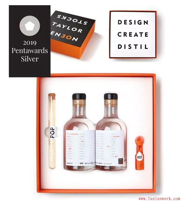 今年飲料類的「鉑金獎(jiǎng)」被來(lái)自英國(guó)愛丁堡的LIND & LIME GIN獲得。包裝設(shè)計(jì)由蘇格蘭的創(chuàng)意團(tuán)隊(duì) Contagious 操刀,酒瓶設(shè)計(jì)的靈感源于品牌商The Port of Leith Distillery所在的Leith 地區(qū)海岸上具有歷史意義的工業(yè)建筑以及老窯.