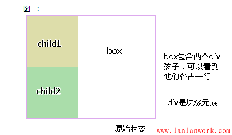 對兩個孩子使用float:left,我在上一篇浮動布局講過,這是父元素會高度坍塌,所以要閉合浮動,對box使用overflow:hidden,效果如下: