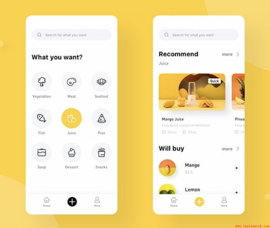 藍藍設計分享一組國外的亮麗黃色界面,并結合界面案例做展開分析。