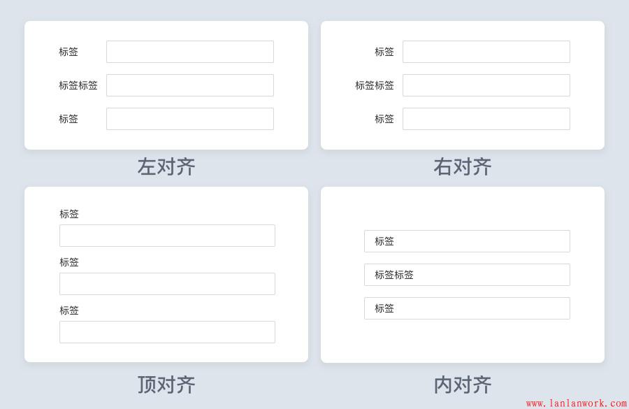 標簽對齊方式有左對齊、右對齊、頂對齊、內(nèi)對齊,都有各自優(yōu)缺點,不同場景酌情使用。