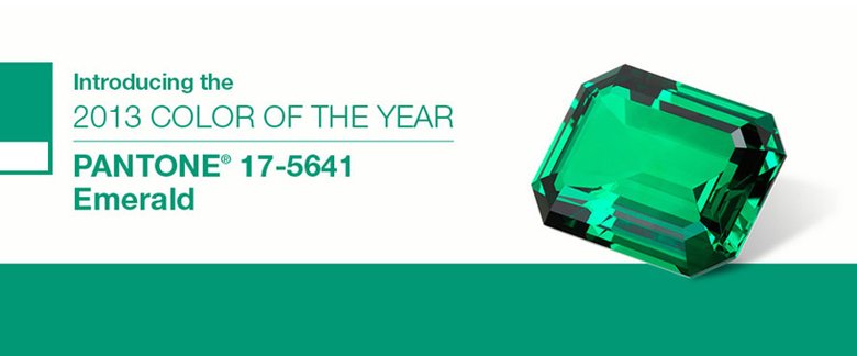 色彩公司pantone 最近選擇了綠寶石色(emerald :17-5641 )作為2013 年的年度顏色,在他們的描述中,綠寶石色“ 生動(dòng),光芒四射,有魅力…… 是一種代表了優(yōu)雅和美麗的顏色,加強(qiáng)了我們個(gè)人的自然存在感,帶給我們平和心態(tài)” 。