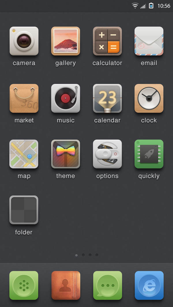 《優(yōu)格主義》為簡(jiǎn)約擬物設(shè)計(jì)風(fēng)格,微起伏,輕材質(zhì),中性配色,嘗試創(chuàng)造一些視覺(jué)亮點(diǎn)。主題背景沿用了由錘子系統(tǒng)引領(lǐng)的深色系簡(jiǎn)約風(fēng)格,給圖標(biāo)提供一個(gè)良好的展示平臺(tái)。以舒適性和易辨識(shí)性為核心設(shè)計(jì)原則。希望你能喜歡!