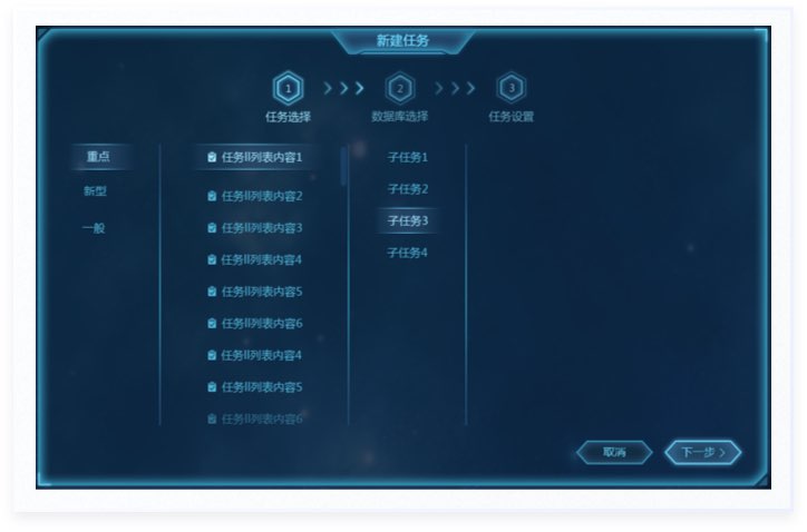 視覺方面使用大屏常用的深色背景,主色采用藍色配色,通過整體排版,元素的設(shè)計,來凸顯科技感。頁面布局方面,采用模塊化布局,便于區(qū)分信息類別;扁平化的視覺元素+框式設(shè)計,最大程度地減少頁面元素的干擾,提升頁面內(nèi)容承載量。