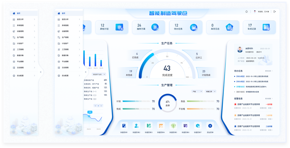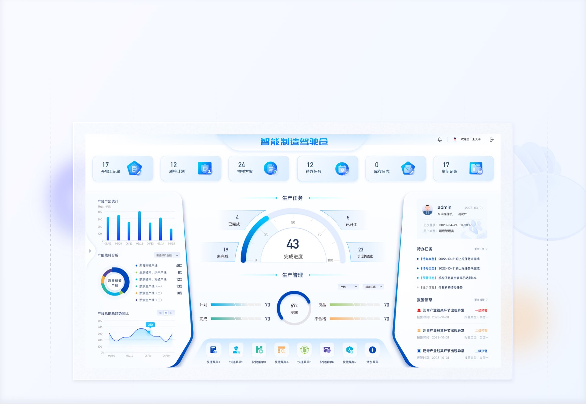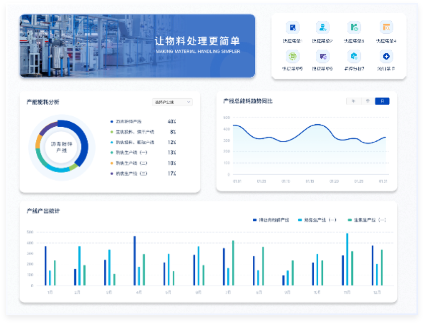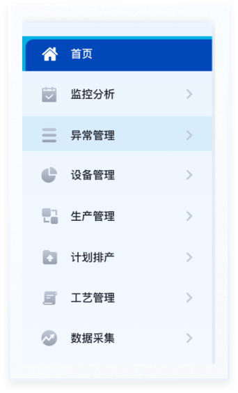 菜單導(dǎo)航區(qū)疊加工廠作業(yè)場(chǎng)景圖,突出軟件的主題同時(shí)豐富頁(yè)面。