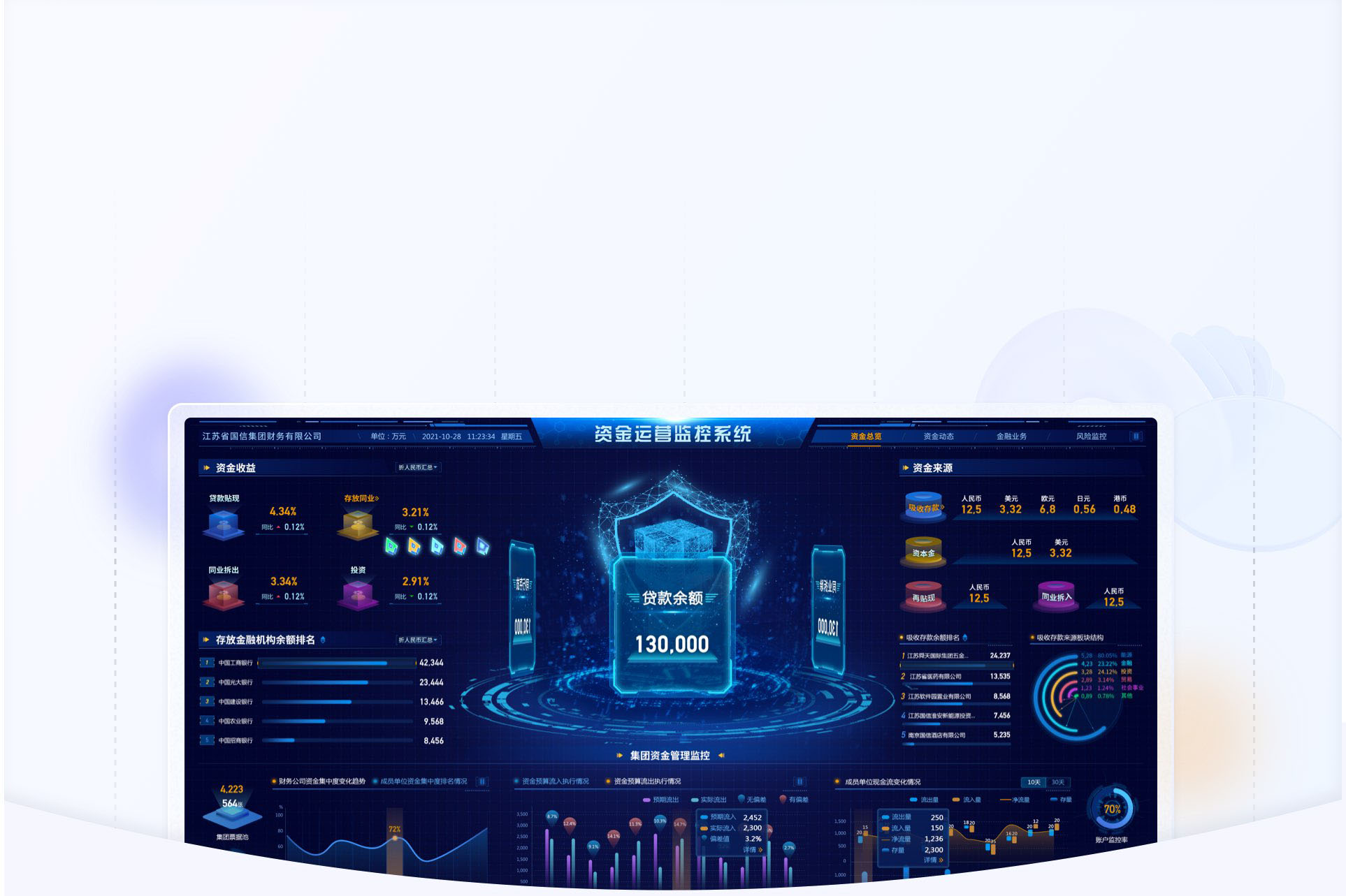 右側(cè)是客戶給的原型,只是把要展示的數(shù)據(jù)簡(jiǎn)單羅列了一下。考慮到大屏應(yīng)用場(chǎng)景,比如公司會(huì)議,集團(tuán)視察,行業(yè)參觀等,都是宏觀數(shù)據(jù)展示為主。所以在設(shè)計(jì)時(shí)不僅要考慮美觀性,更要考慮到整體的交互布局以及交互方式,確保關(guān)鍵數(shù)據(jù)和指標(biāo)在界面上以醒目的方式呈現(xiàn),以便用戶快速識(shí)別和理解。設(shè)計(jì)清晰簡(jiǎn)潔的布局,避免信息過(guò)載,使用戶能夠輕松找到需要的信息。