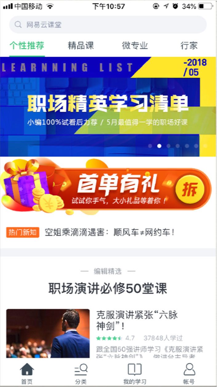 1.首頁根據(jù)產(chǎn)品的不同特色,設置了二級導航,將個性化、精品課、微專 業(yè)、行家作為二級導航標題,既能用來統(tǒng)一呈現(xiàn)特色內(nèi)容,又能保證頁面信息的 層級關系清晰明了;
