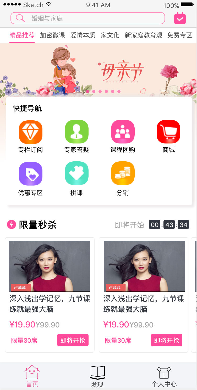 1.首頁根據(jù)產(chǎn)品的不同特色,設置了二級導航,將、婚姻、家庭關系、戀愛、 母嬰、育兒等分類作為二級導航標題,既能用來統(tǒng)一呈現(xiàn)特色內(nèi)容,又能保證頁面 信息的層級關系清晰明了;